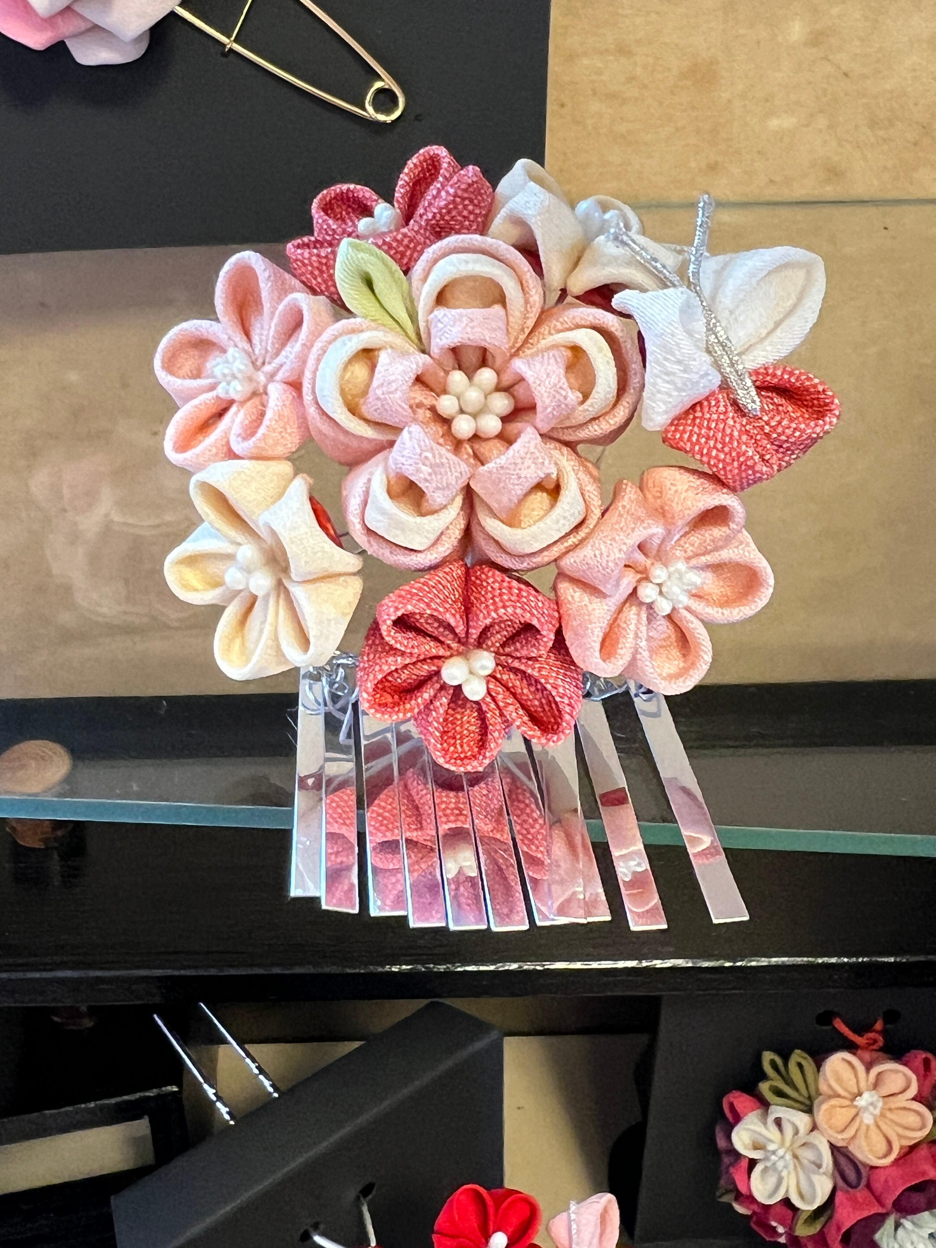日本の伝統美を感じる、手仕事のつまみ細工かんざしです。