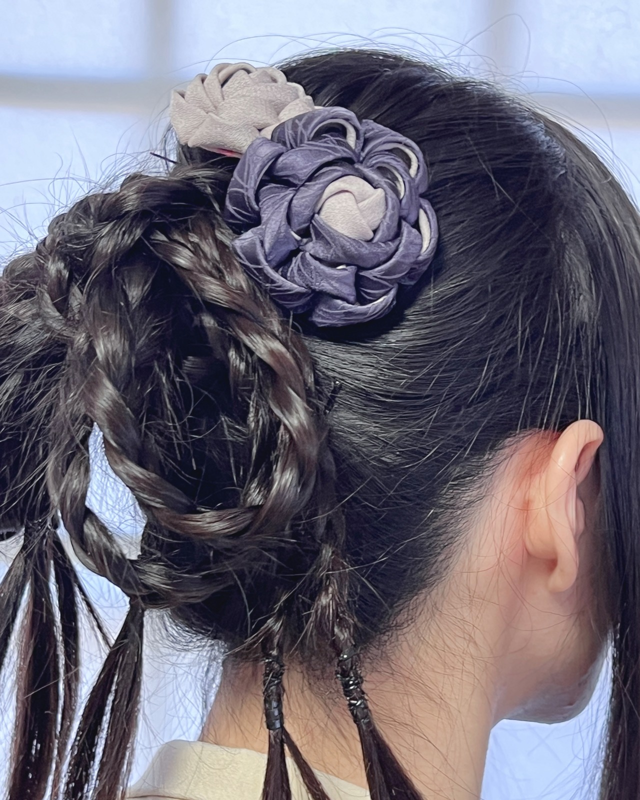 • 花:正絹着物生地(解き、洗い張り済み)使用