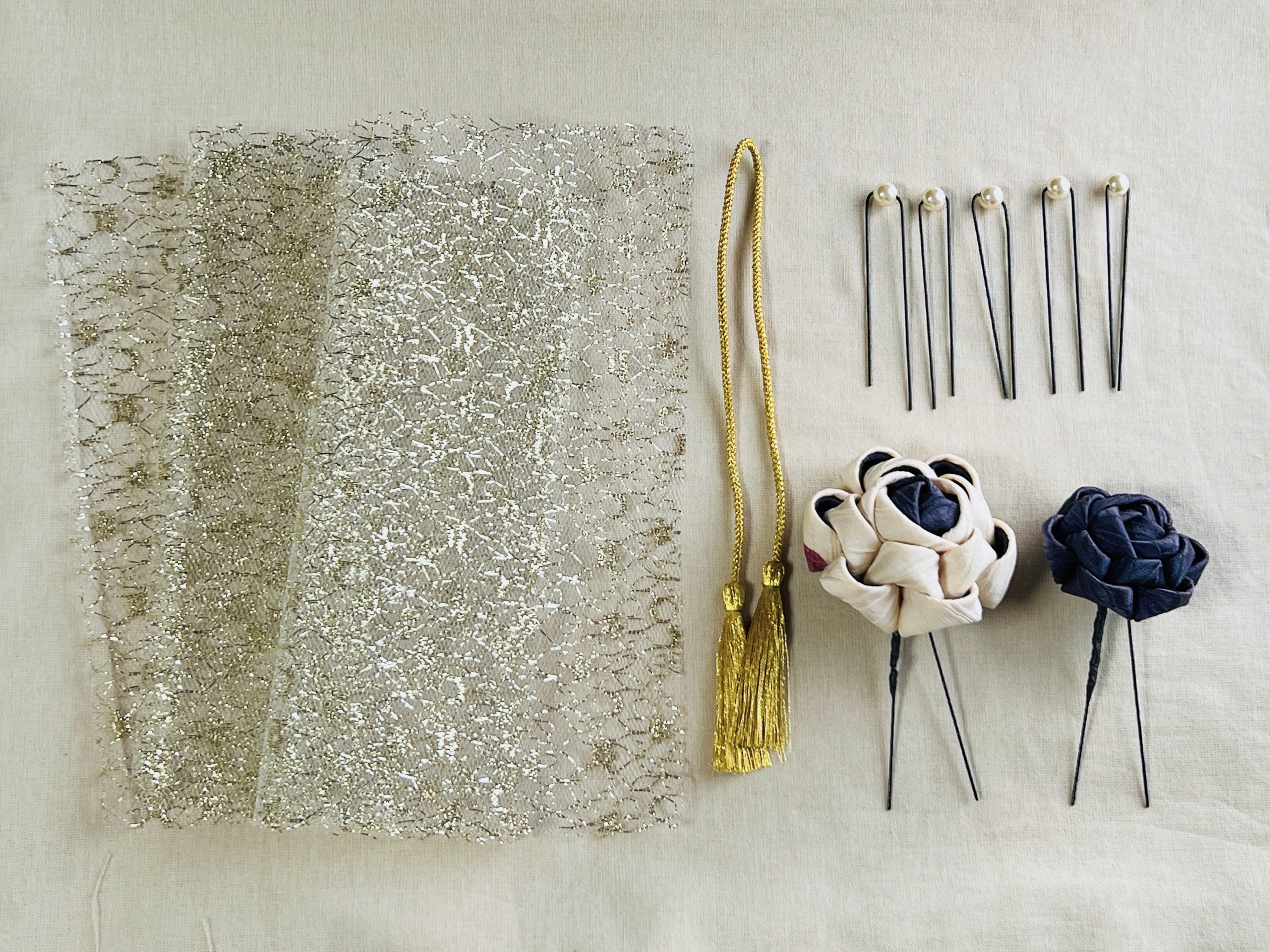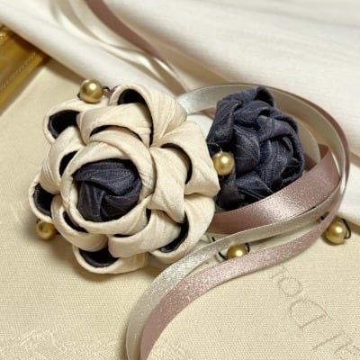 • 花:正絹着物生地(解き、洗い張り済み)使用